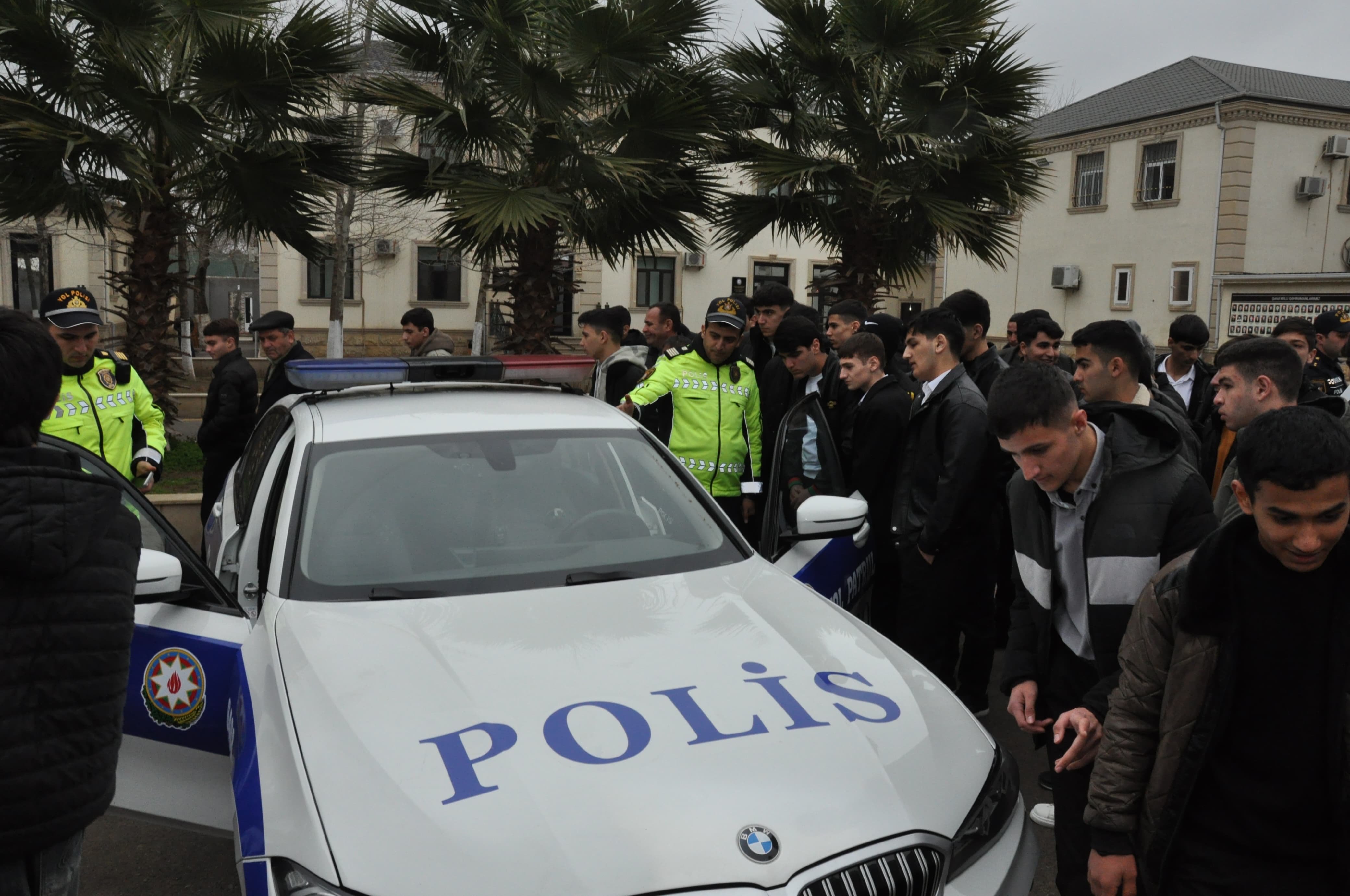 Daha sonra polisin gündəlik xidməti fəaliyyəti şagirdlərin diqqətinə çatdırılıb və avtomobillər, xüsusi texniki vasitələr, eləcə də avadanlıqlarla tanışlıq olub.