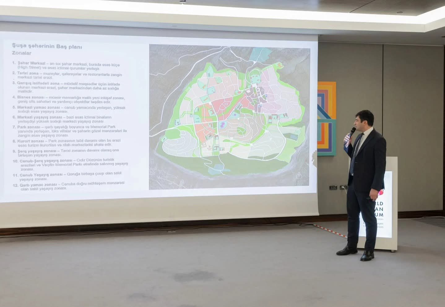 Tədbirdə müasir dövrdə iqlimə davamlı şəhər sistemləri, mənzil təminatı, şəhər mobilliyinin əhəmiyyəti, eləcə də vətəndaşlar üçün əlçatan və inklüziv şəhər inkişafı ilə bağlı təqdimatlar edilib. Müzakirələr zamanı iştirakçılar dayanıqlı şəhər inkişafında vətəndaş cəmiyyətinin rolu və bu sahəyə verə biləcəyi töhfələr barədə fikir mübadiləsi aparıblar.
