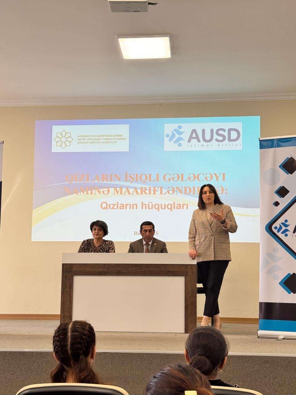 Elnurə xanım qeyd etdi ki, “Ailə və Uşaqlara Sosial Dəstək” İctimai Birliyi 01.08.2025-ci il tarixindən Azərbaycan Respublikasının Qeyri-Hökumət Təşkilatlarına Dövlət Dəstəyi Agentliyinin maliyyə dəstəyi ilə “Qızların İşıqlı gələcəyi naminə maarifləndirmə” layihəsinin incrasına başlamışdır. Layihənin əsas məqsədi erkən nikahların qarşısının alınması, qızların təhsilə daha çox cəlb edilməsi və sağlam ailə dəyərlərinin təşviq edilməsidir. Bu məqsədə nail olmaq üçün maarifləndirmə tədbirləri və media kampaniyası vasitəsilə fərqli sosial qruplar arasında davranış və təcrübə dəyişiklikləri təşviqi həyata keçirilmişdir .