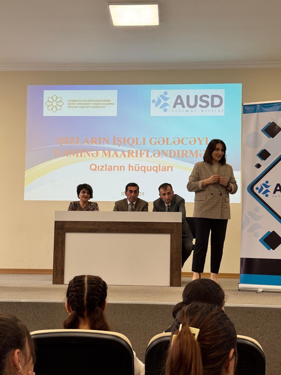 “Ailə və Uşaqlara Sosial Dəstək” İctimai Birliyi Azərbaycan Respublikasının Qeyri-Hökumət Təşkilatlarına Dövlət Dəstəyi Agentliyinin maliyyə dəstəyi ilə “Qızların işıqlı gələcəyi naminə maarifləndirmə” layihəsi çərçivəsində növbəti maarifləndirici tədbiri 29 sentyabr 2025-ci il tarixində Lənkəran şəhərində 1 nömrəli tam orta məktəbdə keçirildi. Tədbirdə açılış nitqi ilə çıxış edən layihə rəhbəri Elnurə Abuşova tədbirin təşkilinə göstərilən dəstəyə görə Lənkəran Şəhər İcra Hakimiyyətinə, Elm və Təhsil Nazirliyinə, Lənkəran-Astara Regional Təhsil İdarəsinə və Lənkənar şəhər Mediasiya Təşkilatına təşəkkür bildirildi.