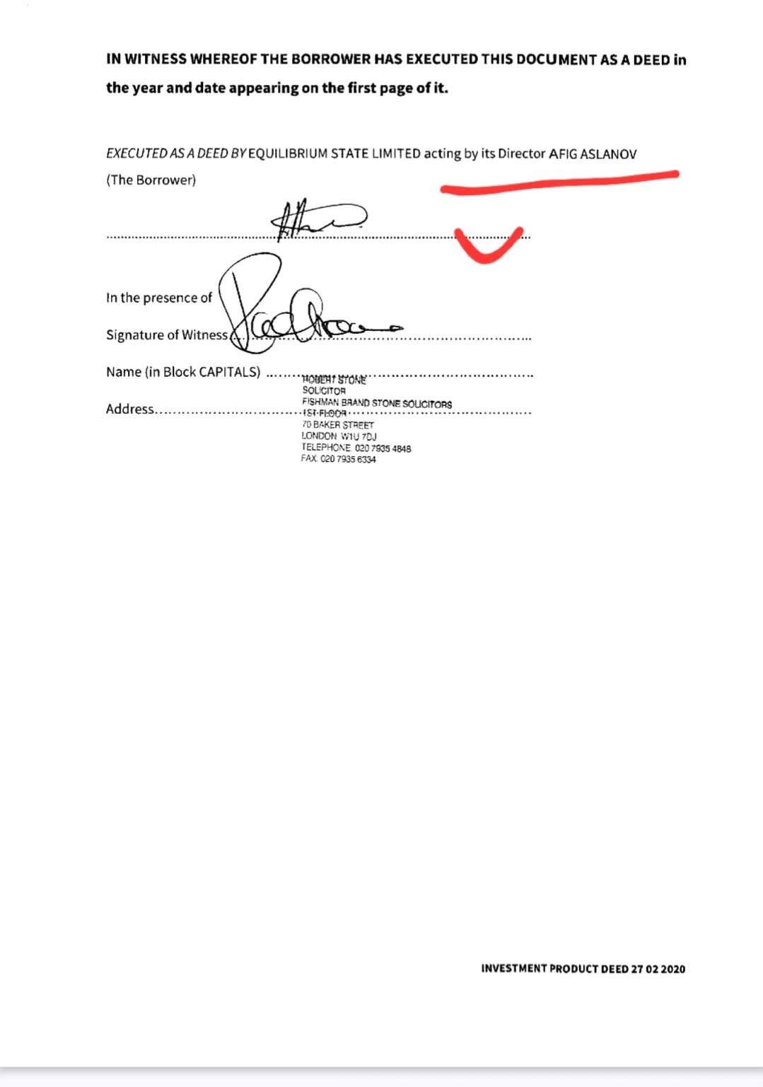 Məlumata görə, Afiq Aslanov atasının Londonda onun üçün aldığı evi girov qoyaraq yüksək məbləğdə kredit götürüb. O, 27 avqust tarixində İngiltərənin MT FINANCE LIMITED şirkətindən 10,2 faizlə, bir il müddətinə geri qaytarmaq şərtilə 235 min 950 funt sterlinq (təxminən 530 min manat) borc alıb. Qeyd edilən kredit Egham şəhərində yerləşən 1a Wetton Court (Title No. SY793665) ünvanındakı daşınmaz əmlak üzərində girov ilə təmin edilib.