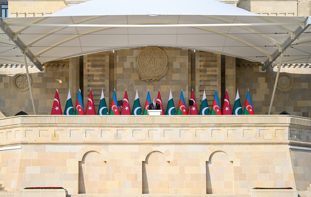 Üç ölkə liderinin iştirakı ilə baş tutan hərbi paraddan möhtəşəm görüntüləri təqdim edirik: