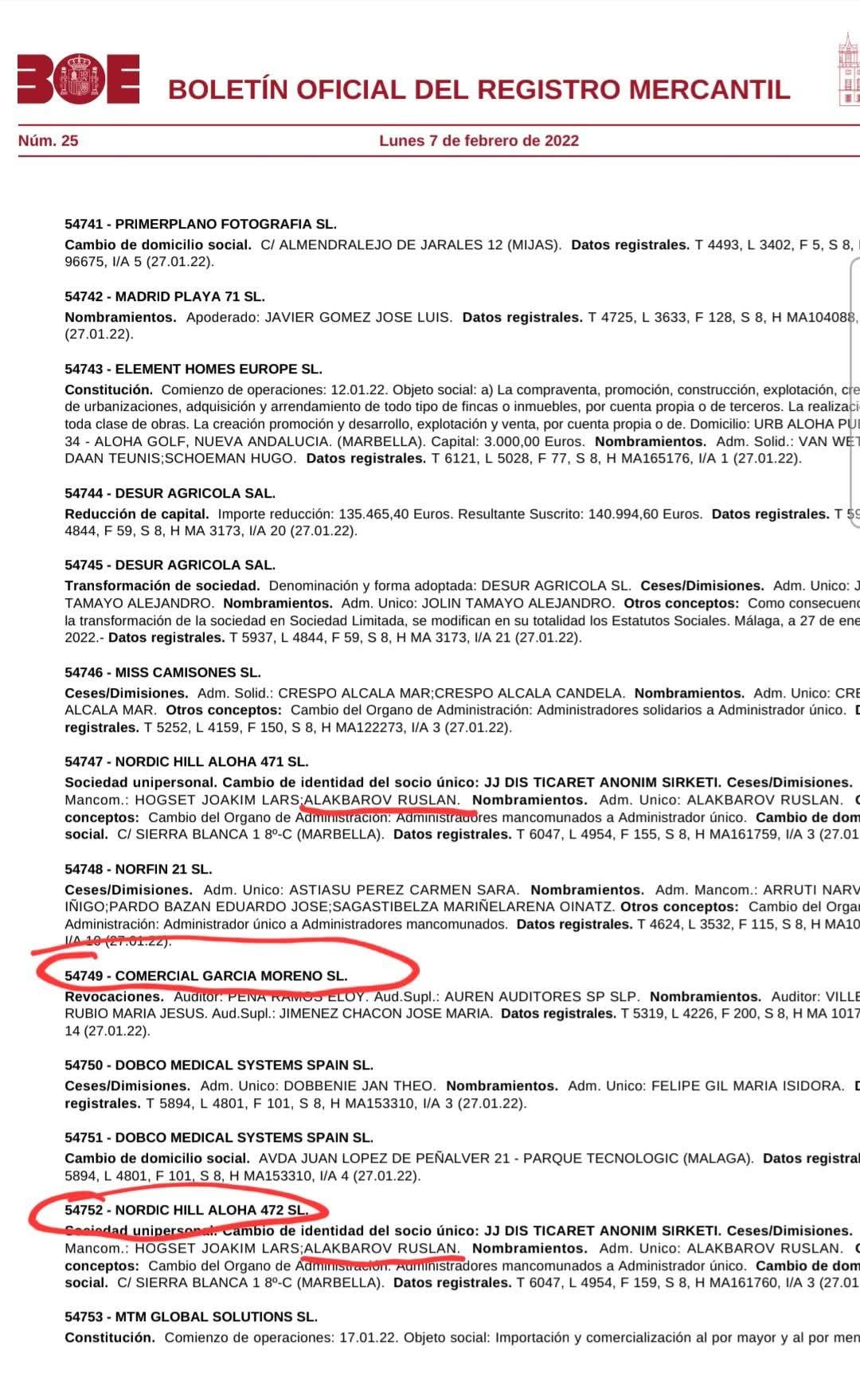 Araşdırmada Ruslan Ələkbərovun adının Panamada 2008-ci ildə qeydiyyatdan keçmiş FABRUS CONSULT A.G. adlı anonim şirkətin direktorları sırasında keçdiyi də bildirilir. Bundan əlavə, onun İspaniyanın Malaga bölgəsində, xüsusilə Marbella şəhərində daşınmaz əmlak, klinika və sağlamlıq mərkəzi sahələrində fəaliyyət göstərən azı 5 şirkətin sahibi olduğu vurğulanır. Bu şirkətlərdə Ruslan Ələkbərov “Administrador Único” – yeganə idarəedici şəxs kimi qeyd olunub.
